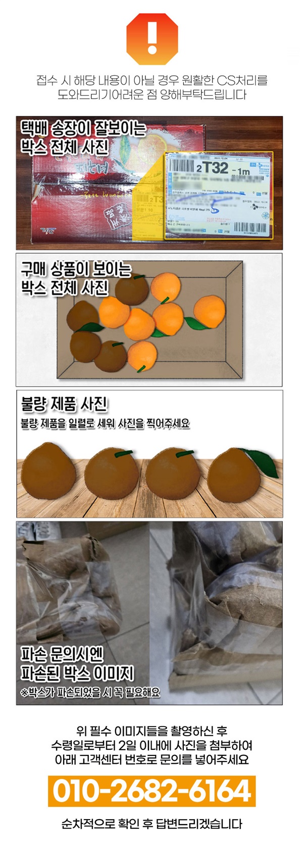 · 상품 불량 사유와 사진을 남겨 주시면 빠른 처리가 가능합니다.