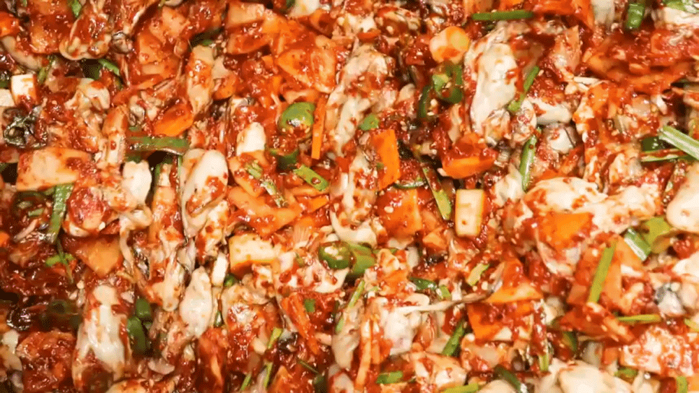 신선한 특제양념과 고랭지무, 파, 고추